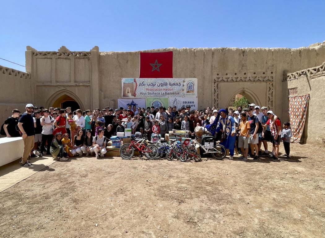 Cada curso, nuestro alumnado de 3º de la ESO protagoniza una de las experiencias más transformadoras de su paso por el colegio: el Viaje Solidario a Marruecos. Esta iniciativa va mucho más allá del turismo; es una inmersión real en la vida de las aldeas de Hassilabied y Haroun, hasta donde transportamos personalmente el material recogido durante el año.