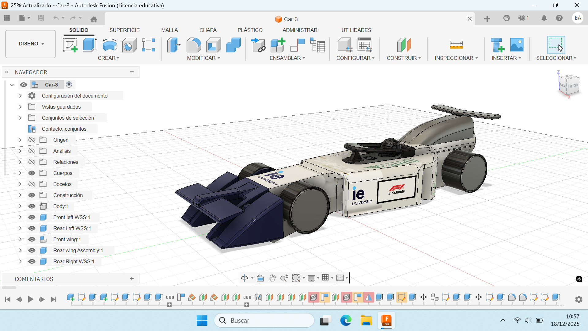 En HuertaRacer, nuestro alumnado no juega a los coches; se convierte en ingenieros y gestores profesionales. El reto consiste en diseñar, fabricar y competir con un monoplaza en miniatura impulsado por aire comprimido, utilizando herramientas de vanguardia como diseño CAD, simulación aerodinámica e impresión 3D.